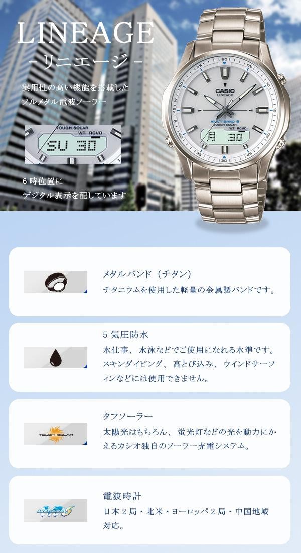 | フルメタルケースのソーラー電波時計「LINEAGE(リニエージ)」。 |