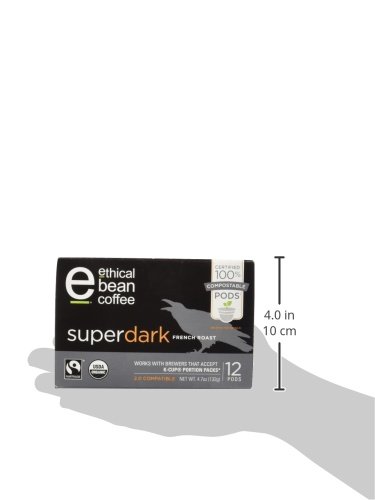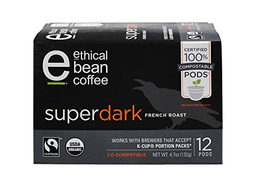 Ethical Bean Coffee 12 Compostable Single Serve Pods French Roast, Superdark, 4.7 Ounce