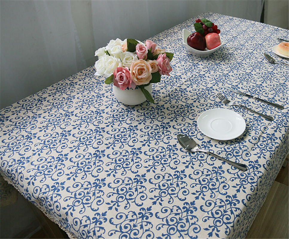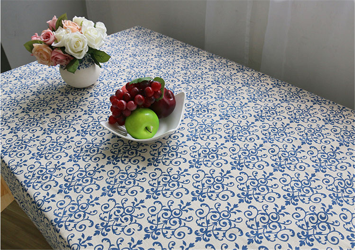 Blue and white porcelain classical Chinese style, fresh IKEA tablecloth, cotton and linen material, all seasons can be used.