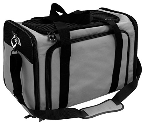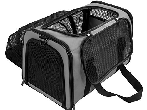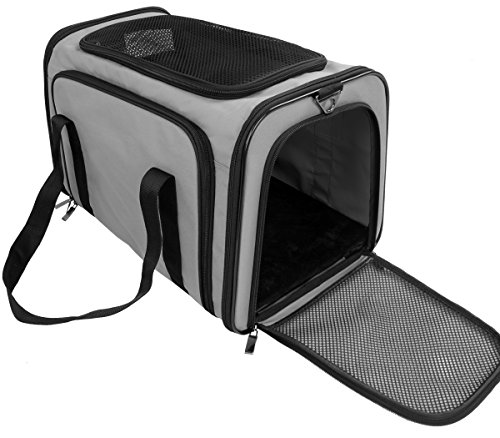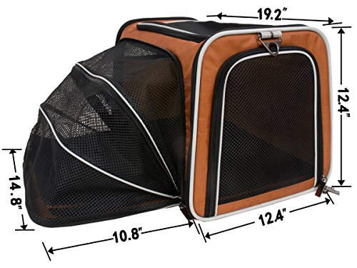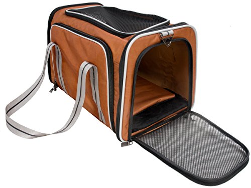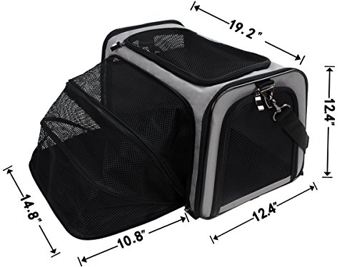 -. Feature : Durable and lightweight pet carrier with expandable compartment versatility and comfort for your pet, made of Nylon oxford. / Airline Approved--meets carry-on requirements for most major airlines (Please confirm airline rules before flying as each airline has different requirements) / Dimension: 19"Lx12"Wx12"H, for pets up to 44 pounds, comes with extra fleece mat, four colors to choose. / Fully adjustable shoulder strap and padded handle, integrated short leash prevents pet from jumping out. / Satisfaction guarantee-Simply return the product for no questions asked refund/replacement if not satisfied.