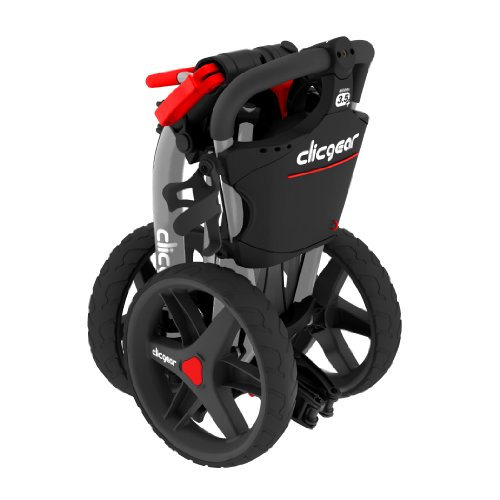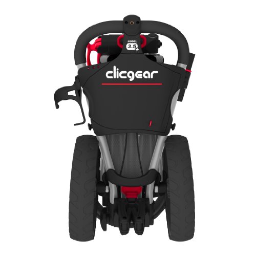 Beginning in Fall 2006, Clicgear has been producing high quality 3-wheel push carts. Since earning the “Best New Product” at the 2007 PGA Merchandise Show, Clicgear has spent the past 5 years establishing itself as the premier compact 3-wheel push cart. 2013 brings the introduction of the new Model 3.5+. Still compact and durable, the Model 3.5+ incorporates 5 upgrades; 1).50% larger storage net 2). Larger cup holder 3). New bag strap system 4). Improved Umbrella Holder bracket and 5). Improved brake system. All Clicgear carts offer a 3 year warranty on the frame and a 1 year warranty on all parts. Clicgear also offers a wide assortment of push cart accessories. The one consistent with the Clicgear is the compact folded dimensions. Still measuring just 13”X15”X23”, the Clicgear Model 3.5+ is the original compact push cart. Additional standard features include: Oversized Console (Included scorecard holder, ball holder, pencil holder and tee holder) Independent Handle Adjustment (Allows cart to maintain full tired width when handle is adjusted down) Built-In Accessory Mounts (Holds Clicgear designed accessories) Adjustable Bag Saddle System (Accommodates all bag sizes) Built-In Umbrella Mount (Umbrella holder comes standard with all carts)Feature