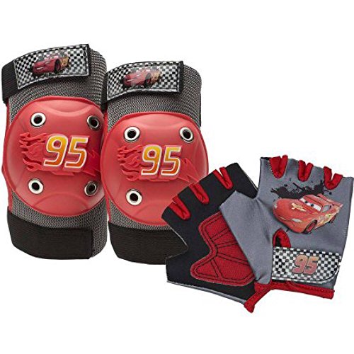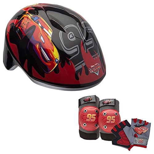 -. Feature : 7 piece set includes helmet, (2) knee pads, (2) elbow pads & (2) gloves / Padded helmet size 19-20 1/2 in. with adjustable straps / Designed with Disney Cars Lightning McQueen graphics and logos / Great accessory set for skate, bike or scooter / Recommended for toddlers and children ages 3-4 years