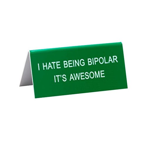 Green Hate Being Bipolar Its Awesome 2 x 3.5 Small Humorous Table Top Desk Sign