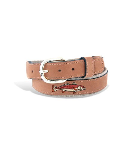 Studio : Zeppelin Products, Inc. Publisher : Zeppelin Products, Inc. Binding : Sports Apparel Product Description Express your passion for fishing by sporting this vibrantly embroidered leather belt. It features a Redfish embroidered full-grain Nubuck leather top sewn onto a 100% non-shrink buff cotton webbing. Fits shorts and pants that have a minimum loop size of 1.25 inches. Belt size is one size larger than pant size. 0