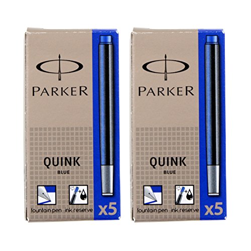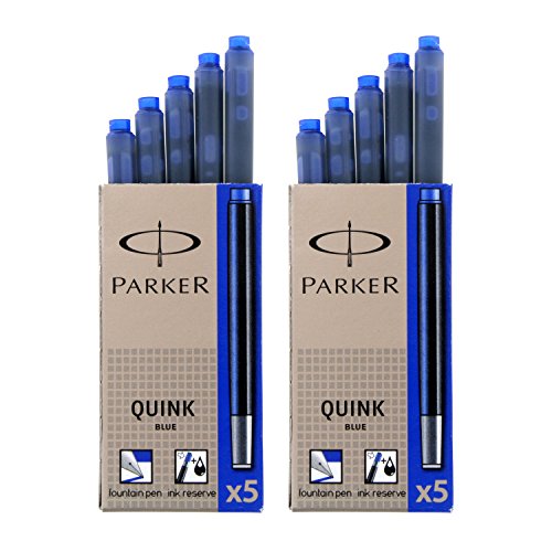 Parker Quink Permanent Ink Fountain Pen Refill Cartridges, 10 Blue Ink Refills (3016031PP)