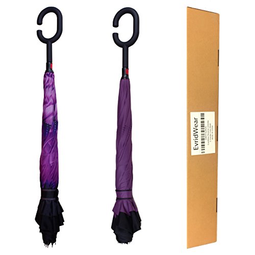 -. Title : EvridWear Reverse Folding Double Layer Inverted Umbrella, Self-Standing, C-Shaped Handle 2 Pack Value Set (Purple Flower + Purple)
