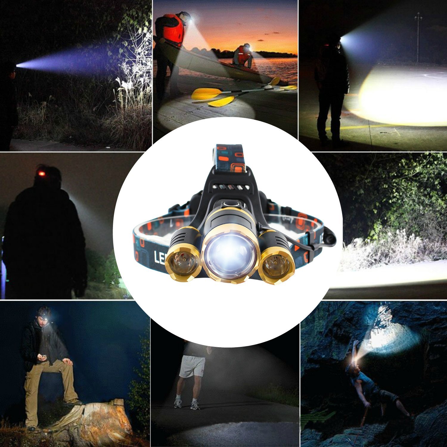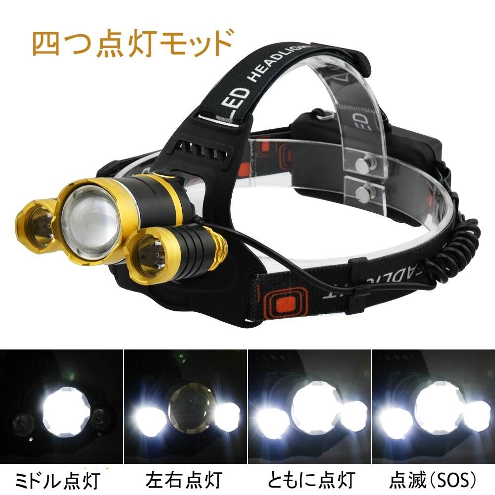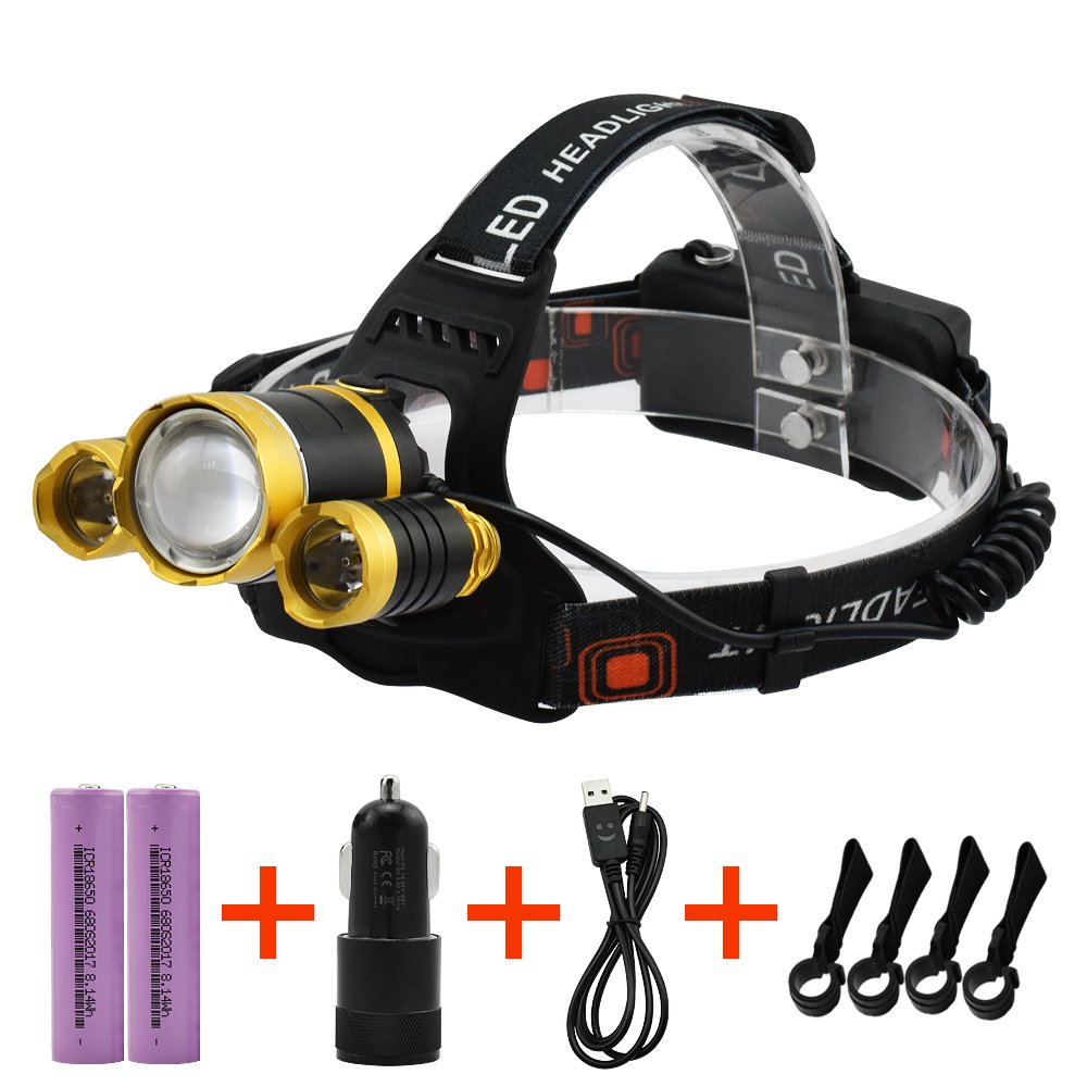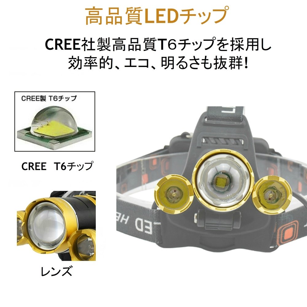 Using a T6 LED chip (made in the USA) as a rechargeable LED headlight, the brightness is outstanding, and with three lights it reaches the super brightness of 5400 LM.