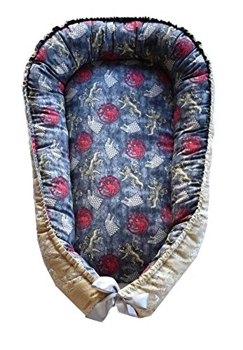 Studio : SAVOTO Publisher : SAVOTO Binding : Baby Product Product Description Handmade. Measurements: Baby nest: 23x35 inches (60x90cm) Sleeping pad: 13x26 inches (34x65 cm) Materials: All materials are hypoallergenic. 100% cotton fabric, 100% polyester mattress pad, super soft 100% polyester fiber fill, satin ribbon. Features: Babies feel safe and comfortable sleeping in a nest. Portable sleeping place. Can be used around the house or while travelling. Light weight. Baby can be easily placed into a crib while sleeping in a nest. Size can be adjusted for a baby nest. With open clasps baby nest size can be extended for babies up to 6 months old. Double sided. Can be washed in a washing machine on a delicate cycle. Air dry or low heat tumble dry. 0