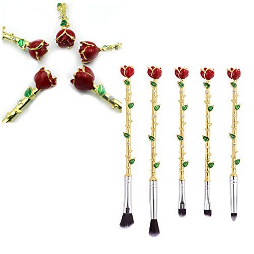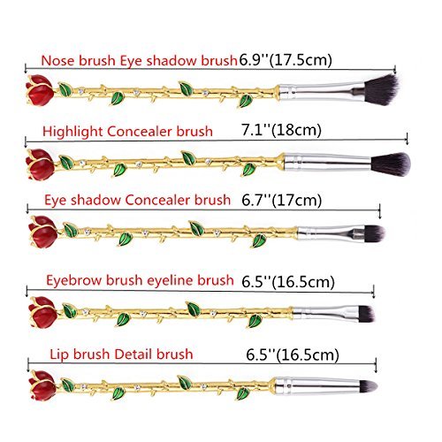 -. Feature : New Style Makeup Brush:5 Pcs rose flower Makeup Brush,Including Eye shadow brush+Blooming powder brush+Detail brush+Nose brush+Eyebrow brush,Package is Flannelette bag,Material is Aluminum tube and alloy handle,bristles are mainly fiber wool,The touch is very soft and Brush grasp powder is fine. / High Quality:High density soft bristles,non-shedding,odour free,Not hurt your smooth skin,have silky touch feeling and easy to stick powder,they are ensured for long time use,Easy to clean,do not drop or absorb any pigment,Perfect for create a flawless makeup and safe for sensitive skin. / Use:Suitable for studio,makeup study,personal makeup,makeup artist,etc.Different kinds of beauty brushes;Multi-sized and convenient for both professional or individuals use;such as eye shadow brush, powder brush and eyebrows,nose and cheeks makeup for daily use;Fulfills all daily basic makeup requirements;Portable and convenient for daily makeup. / Easy To Clean:The bristles of this makeup brush is easy to clean and dry off fast,can keep in clean and won't hurt your skin,These essential brushes are perfect for liquids,powders,or creams to produce a beautiful face and eye makeup;Using these beauty brushes will show your natural beauty;makes applying makeup a luxurious experience. / Most suitable as a gift brush, beautiful appearance, high quality. Of course, we have the best after-sales, if you are not satisfied with it, we unconditionally replace or refund.