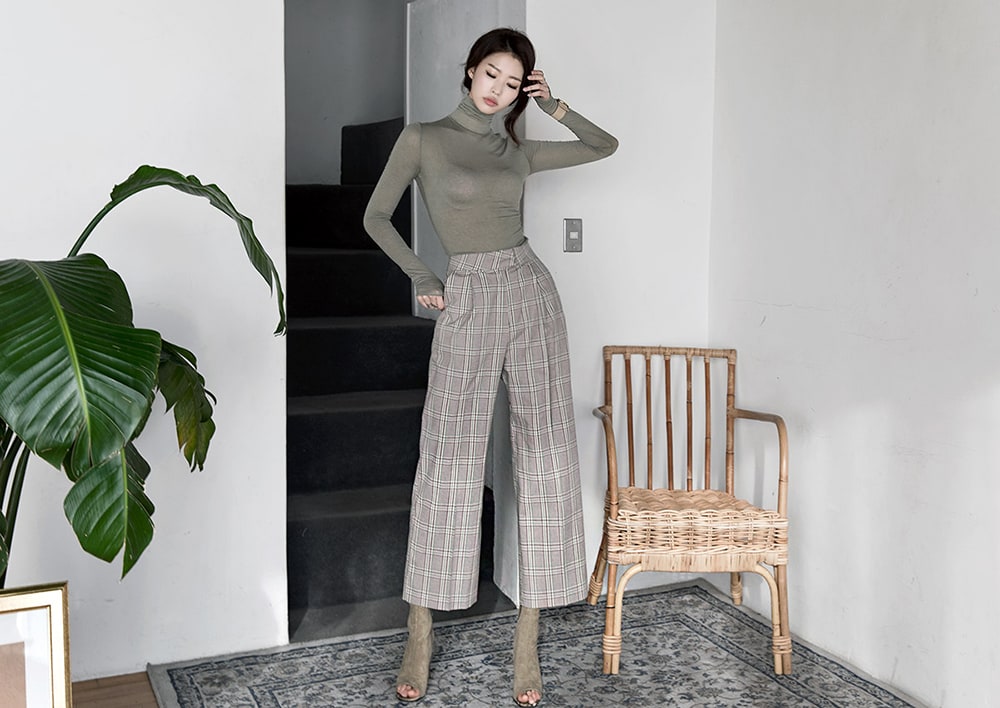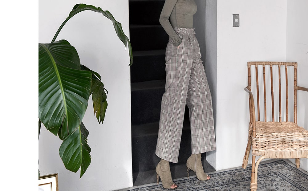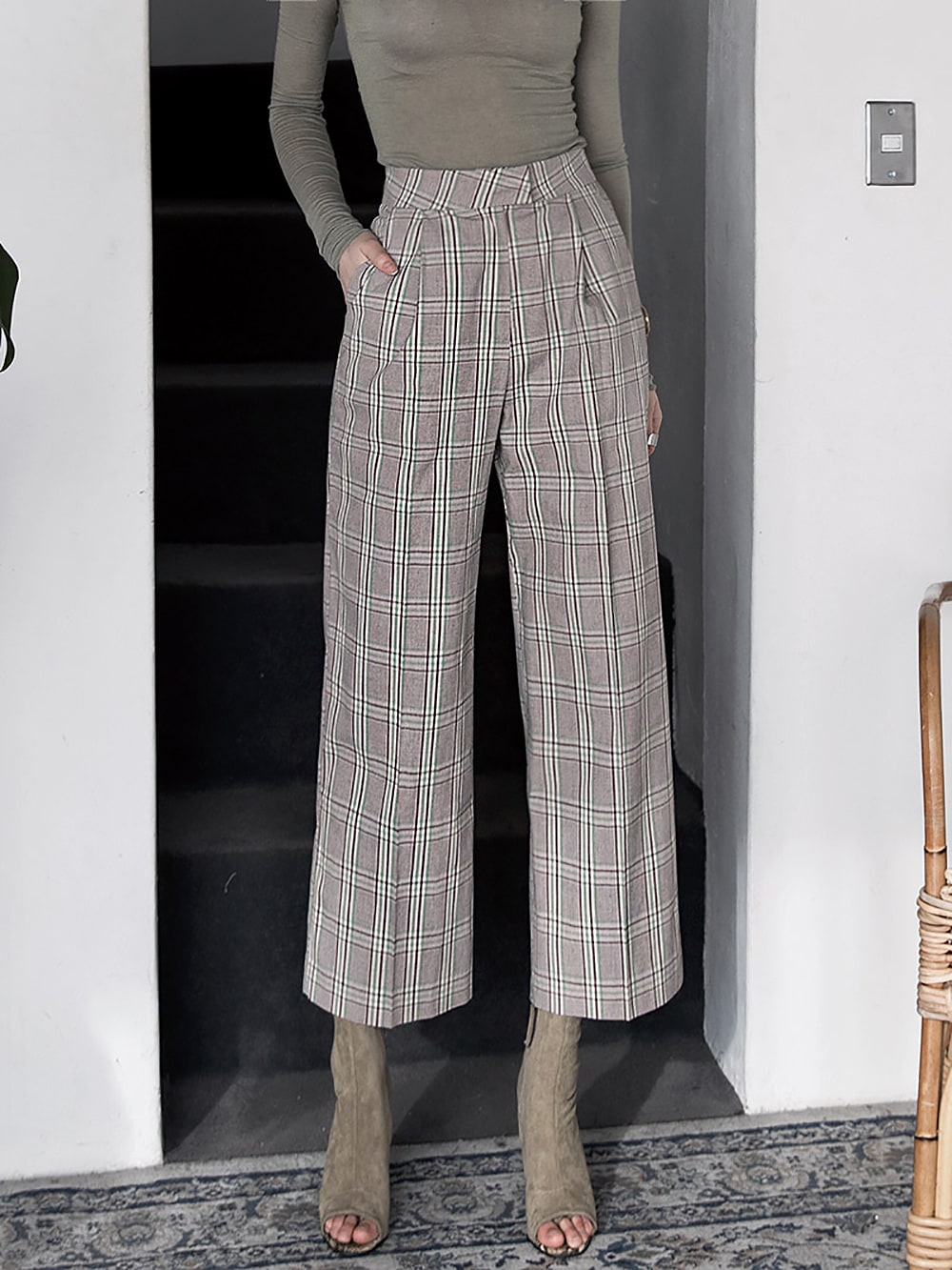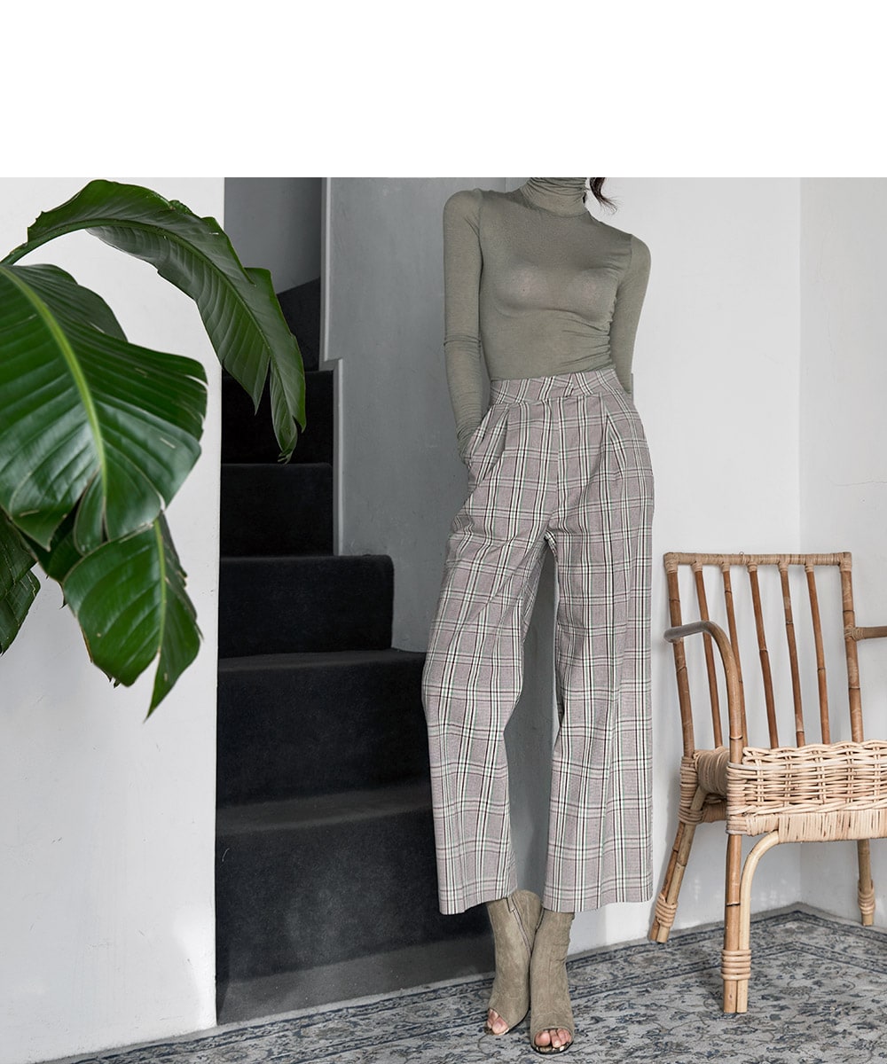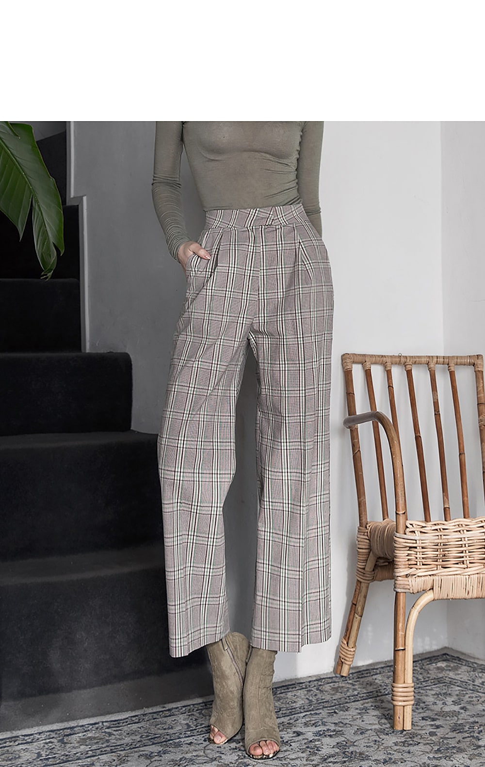 P1820 스테블 체크 슬랙스 팬츠 Beige check