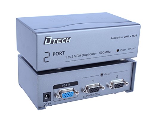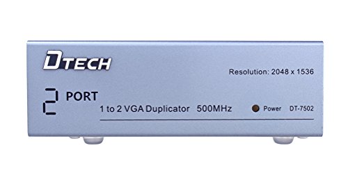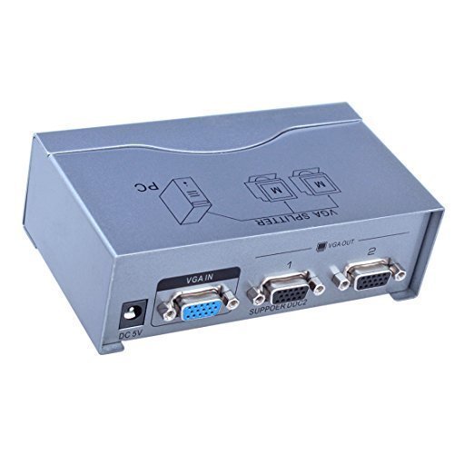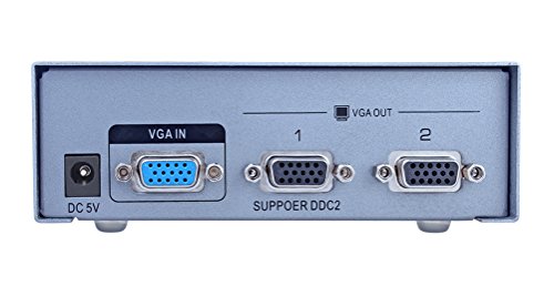 Split a single video source to 2 separate VGA monitors, simultaneous display. Supports VGA, XGA, SVGA, UXGA video signal.