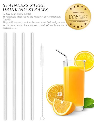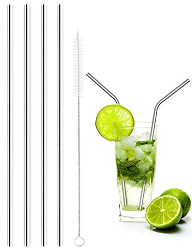 Stainless Steel Drinking Straws with Free Cleansing Brush, Multiple Using, Food-grade Safe, Durable, Energy Saving and Environmental (Set of 4 (Straight))