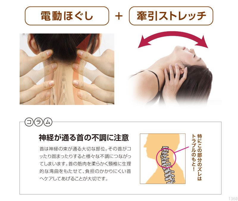 電動ほぐしと牽引ストレッチで首のコリがスッキリ