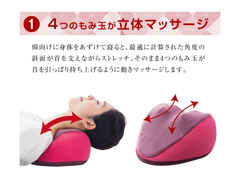 寝るだけしっかり首をストレッチしながら、コリほぐしを実現新方式「首のストレッチ+揉み玉構造」で、気持ちよく首を治療。