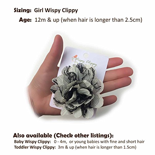For new baby's barely there fine hair, choose our baby size Wispy Clippy. When your baby's hair gets a little thicker and longer (1.5cm), she can start to use the toddler size. The baby size will continue to work, it just holds less volume of hair than the toddler size. The girl size Wispy Clippy holds the most volume, it generally works for all girls and women.