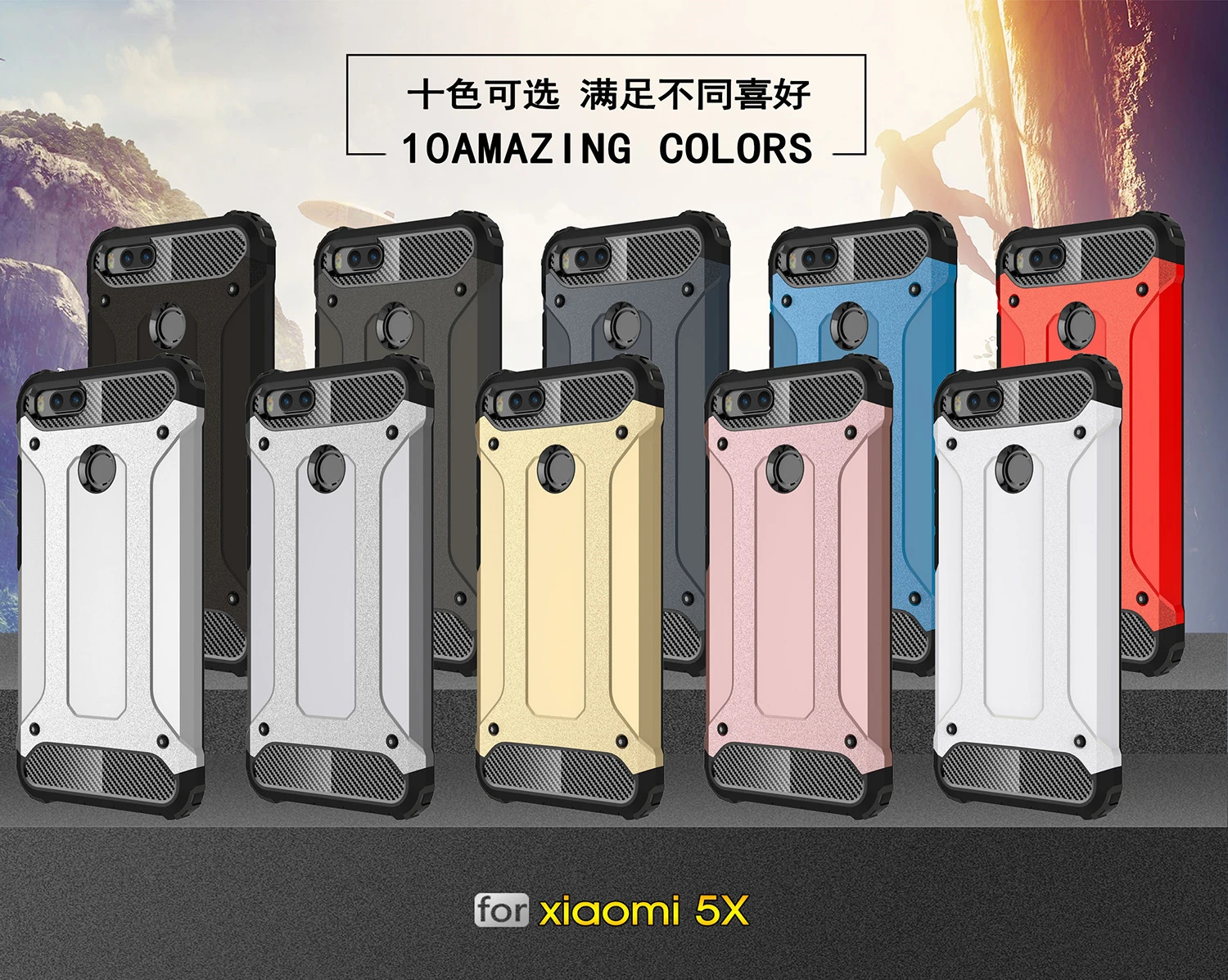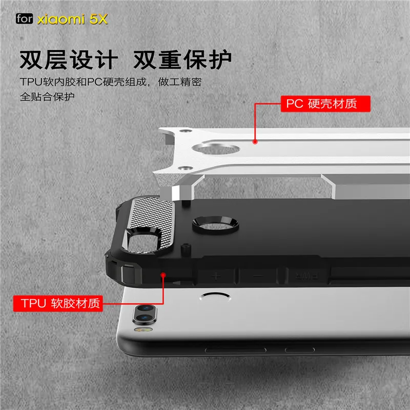 feature 2:for xiaomi 5x 2 in 1 Dual Layer Shockproof Silicon Slim Hybrid Case
