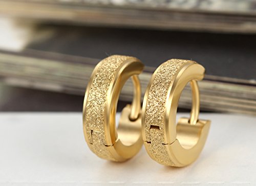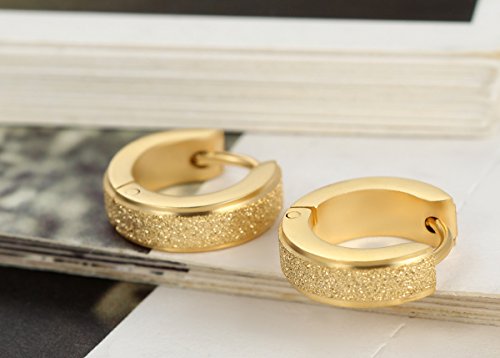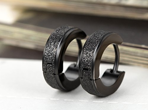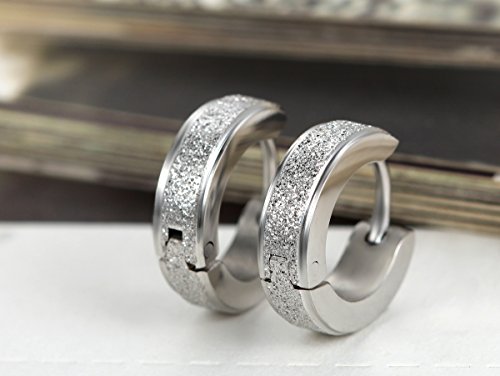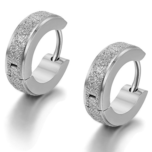 -. Title : Flongo Men's Classic Stainless Steel Matte Hoop Hie Stud Earrings