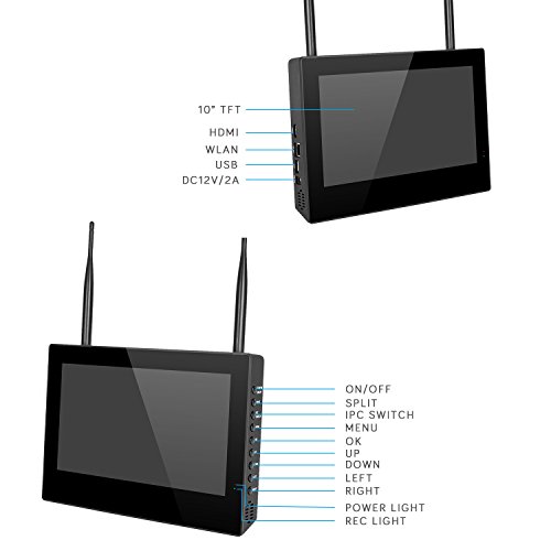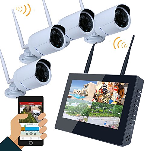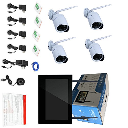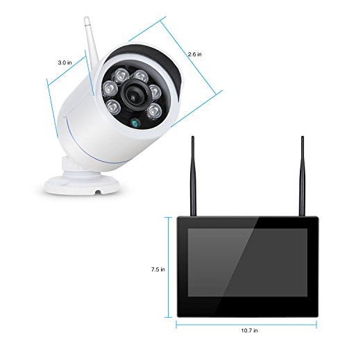 -. Feature : ALL-in-One 10inch TFT Monitor: 2 in 1 Network Video Recorder with built in 10 inch 960P High Definition TFT Screen Kit (not a touch screen) release you from selecting corresponding monitors .Comes with HDMI port,offers an extra option to view live feeds on your larger screen HDTV/monitor at same time. It requires 3.5inch SATA internal port HDD for recording video, max capacity can be 4TB only. / Remote Monitoring: Easy Remote viewing on Smart phone, tablet, PC. Remote viewing anytime anywhere for residential surveillance uses and business surveillance uses. Simple to connect, only download App and add device ID. Set motion detection area and schedule notifications time so that you can focus on things that are truly important! / Plug & Play with Auto Pair Technology: Security System built in Router, IP cameras wireless receive wifi signal from monitor, there is no need to run video or Ethernet cables for cameras, just plug the cameras and the monitor to power outlets, you'll have a live view of cameras on the monitor instantly, the system keeps recording even without an Internet connection, but if you need remote view on smartphone app, Just connect the monitor to your home router via Ethernet cable for Internet. / Intelligent Email Alert System: Intelligent motion detection & email alert with crystal images; Never miss any suspicious moments with the smart motion-triggered alarm function. You can choose between whole screen motion detection and custom motion detection area. And when movements are detected in the masked areas, instant alarm will be sent by email. / 1 Year Warranty : We provide 2 months free return or exchange for any reason. 1 year warranty, as well as 24 hours US local customer service & technical support. Any other problems with this Wireless Security Camera System, please feel free to contact us.