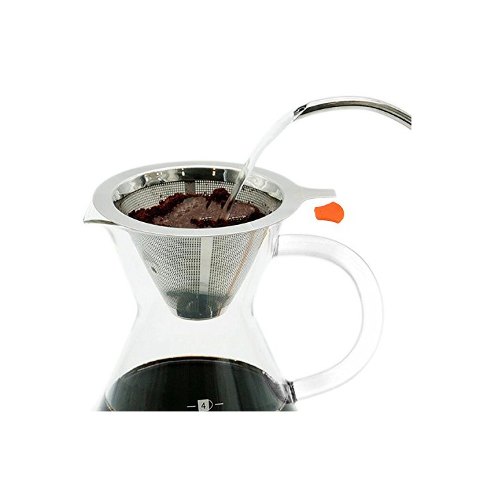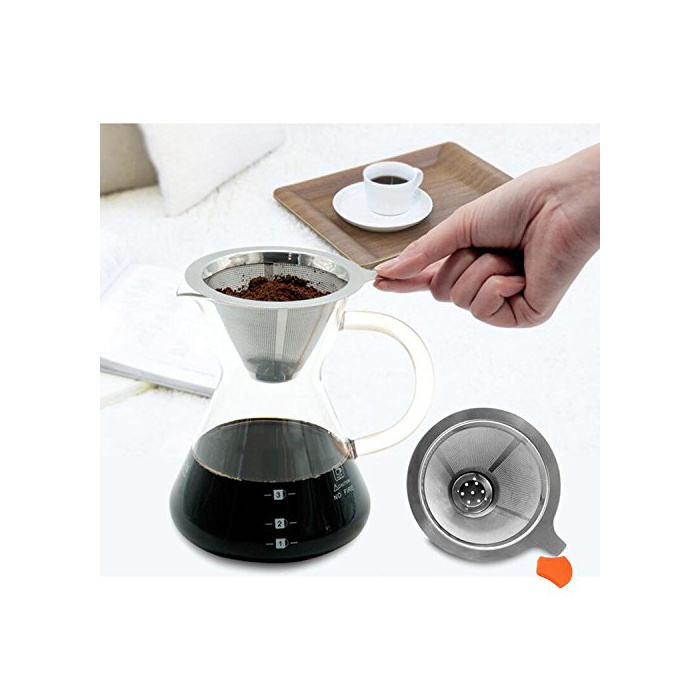 HelloYM 커피 드 re파 스테인레스 필터 커피 서버 일체형 2 층메쉬 청결 하기 쉽 내열 유리 필터 불요 1~4 배용 (오렌지)