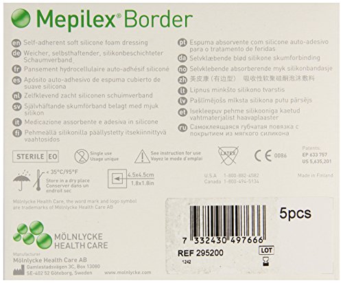 -. Title : Molnlycke Wound Care SC295200 Mepilex Border 3 x 3 Inch Self-Adherent Foam Dressing - Box of 5