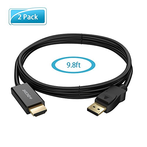 DP to HDMI Cable Displayport Cable 10ft to HDMI for Connecting Laptop to HDTV or Project 2 Pack - Black