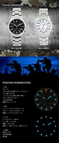 -. Feature : 全部で2色あります。こちらの商品は 01. ホワイト でございます。 / 【仕様】 駆動方式:クオーツ(Ronda社製 515 スイス製ムーブメント) 表示方式:アナログ 防水:100m防水 バックル:2重ロック式 / 【機能】 トリチウム(12個のインデックスと長針・短針・秒針) デイト(日付)カレンダー 100m防水性能 裏蓋スクリューバック / 【素材】 ケース:ステンレススティール ベルト:ステンレススティール 裏蓋:ステンレススティール 【サイズ】 ケース直径:約38mm ケース厚:約13mm 腕周り:約15.0~21.0cm 重量:約135g / 【付属品】 専用ボックス 取扱説明書(日本語) 保証書 【種別】 新品未使用 正規品 メンズウォッチ/男性用腕時計
