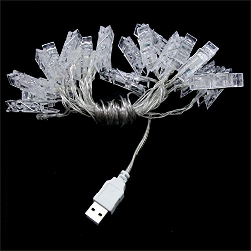 Warmoor 20 Photo Clips String Lights Christmas Lights 16.4 feet, Indoor/Outdoor, USB Powered for Home/Party/Christmas Decor, Warm White