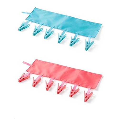 Cindy&Will 2Pcs(Watermelon Red + Blue) Portable Travel Laundry Drying Clothespins Clips for Drip-dry and Airing-out, Turn the Hanger into a Clothesline