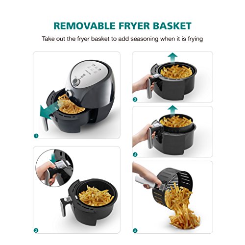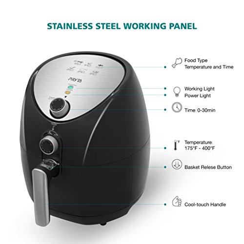 COOK BOOK with 50 RECIPES INCLUDED: The PRYTA Air Fryer comes with a cookbook filled with nutritious and delicious recipes for every meal including french fries and fried Chicken, exotic recipes like Spring Roll and Meatballs, and also desserts such as Grilled Cheese. There's something for everyone in the family to enjoy!