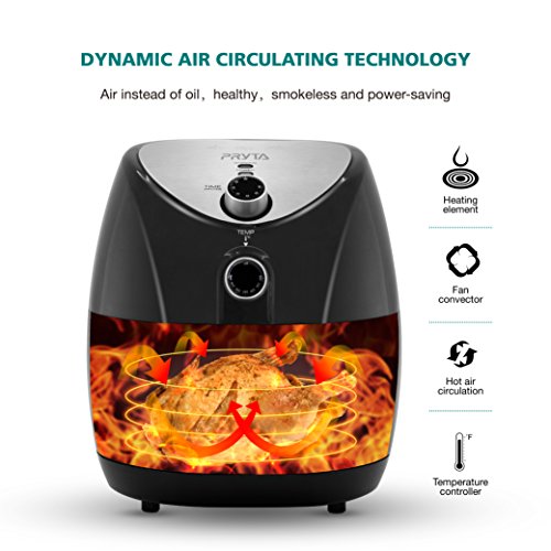 RAPID AIR CIRCULATION SYSTEM: With the PRYTA air frying technology, all food can be exposed to constant heat with rapid circulation, which makes your fries crispy. For certain food, the fryer can finish cooking within 2 minutes.