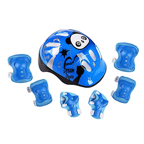 -. Title : Skateboard Helmet Sets Cycling Roller Skating Helmet Elbow Knee Pads Wrist Sport Safety Protective Guard Gear - 7 Piece Set (Blue)