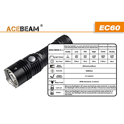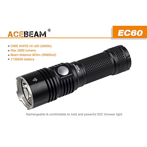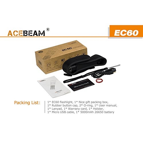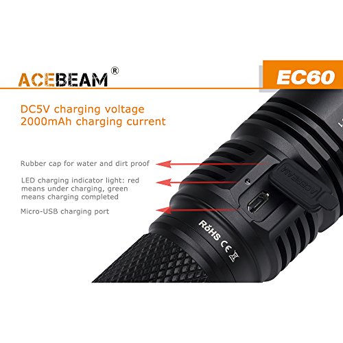 ACEBEAM Rechargeable LED Flashlight with 5000mAh 26650 Rechargeable Battery Quick Charger