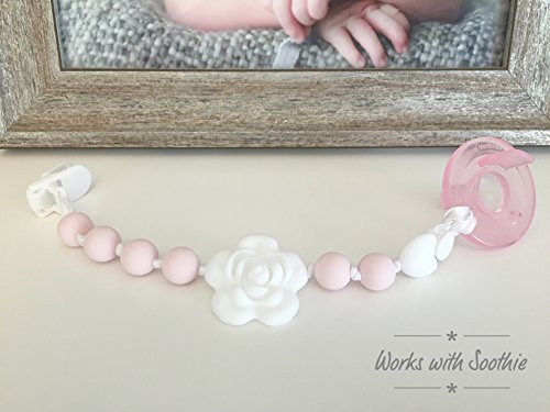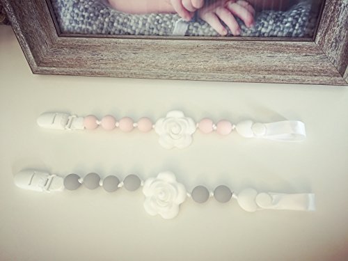 QUALITY: Handmade, Designer, Custom Bead Colors, Multiple Chewing Textures, Universal Pacifier Clips and Baby Teethers for Girls