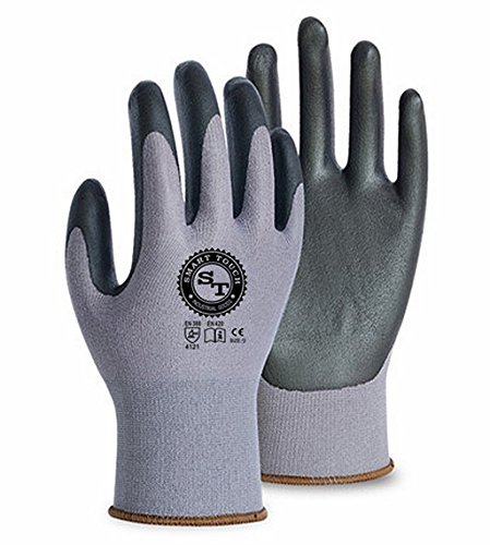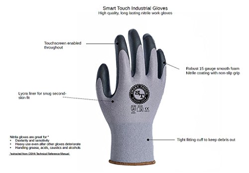Quality Touchscreen Enabled Nitrile Work Gloves :: 12 Pack of Non-Slip, Great Grip Work Gloves :: Breathable, Reusable & Resistant Safety Gloves :: Available in M, L, XL