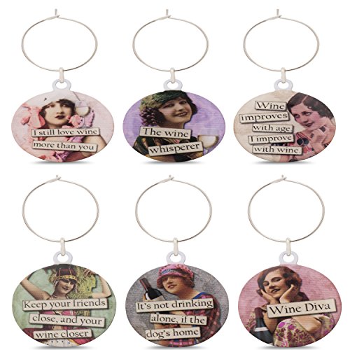 -. Binding : Kitchen -. Brand : Savvy Design Store -. Color : Various -. EAN : 0784411424173 -. Feature : This set of 6 wine glass charms will add some flair to your wine glasses and are entertaining talking point! / Never lose your wine glass again. Wine charms are a great way for yourself and guests to keep track of their glass / Delivered in an organza gift bag these wine markers are perfect for entertaining, or to give as a house warming, Christmas or hostess gift -. Label : Savvy Design Store -. Manufacturer : Savvy Design Store -. Model : COMINHKPR133050 -. MPN : COMINHKPR133050 -. PackageQuantity : 1 -. PartNumber : COMINHKPR133050 -. ProductGroup : Kitchen -. ProductTypeName : HOME -. Publisher : Savvy Design Store -. Studio : Savvy Design Store -. Title : Funny Vintage Women Wine Glass Charms - Set of 6 Wine Glass Charms. Always know which glass is yours with these wine markers! -. UPC : 784411424173