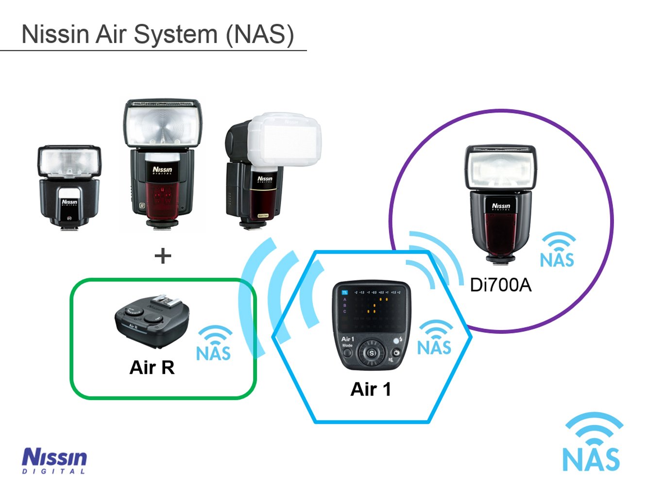 NAS (Nissin Air System) compatible receiver AirR is a radio type wireless TTL receiver.