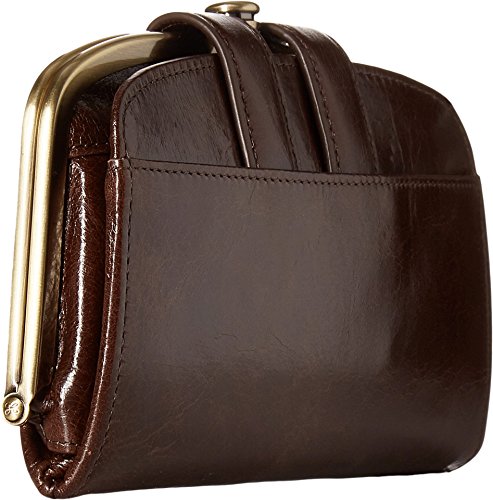 Superbly mixing class and function, this beautiful Halo Compact Wallet by Hobo is the perfect accessory for all occasions! This clutch is made from smooth, top-grain leather which has been extra tumbled for a unique, broken-in vintage look and shine. Kiss-lock closure on one side opens up to reveal a spacious storage compartment. Undo the snap closure on the other side, and you'll find 9 card slots and a thumb-glide ID holder, perfect for keeping your most important cards within easy reach. A convenient back wall slip pocket is perfect for your phone. Measures 6.75" x 4" x 1".Feature