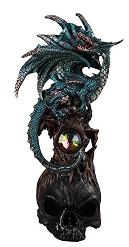 StealStreet SS-G-71587 Dragon with Orbe Embellished Skelton Skull Decorative Figurine, Blue