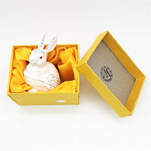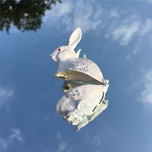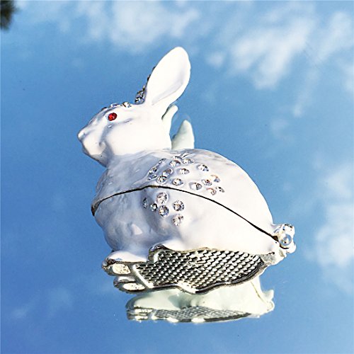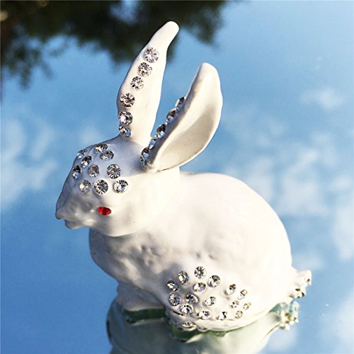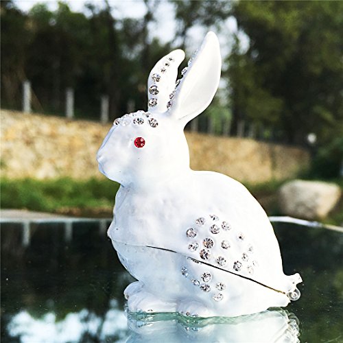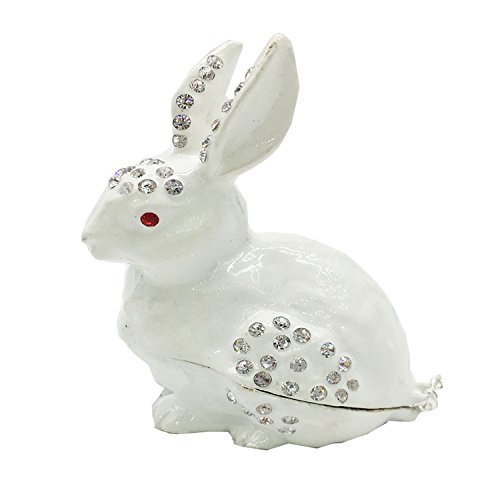 Waltz&F White rabbit Hinged Trinket Box Bejeweled Hand-painted Ring Holder Animal Figurine Collectible