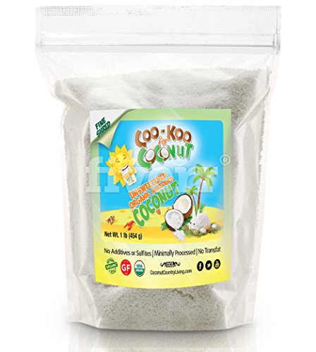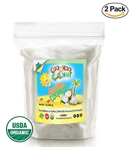 Organic Shredded Coconut Unsweetened, 2 lbs, Fine Shred w/ Recipe E-Cookbook, Gluten Free for Macaroons, Pies, Coconut Milk (1 lb pack of 2)