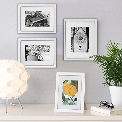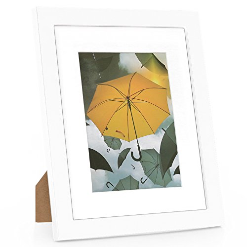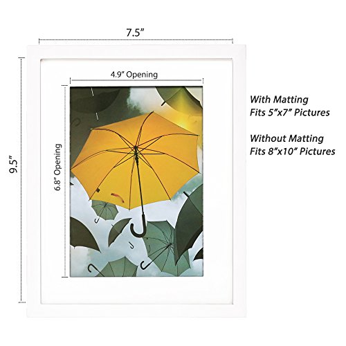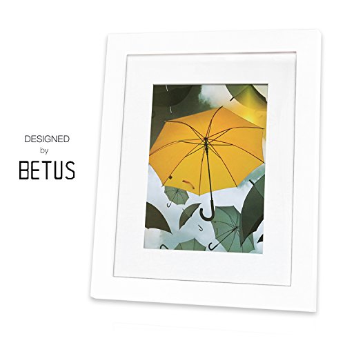 8x10 White Picture Frames, Betus [Elegant Design] Wood Framework with PS Polymer Front Display Pictures 8 x 10 inch or 5x7 with Mat - Arts, Paintings and Photos - For Desk, Tabletop or Wall Mount