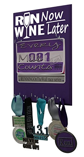 Running on the Wall Medal Hanger Display and Race Bib - RUN NOW, WINE LATER