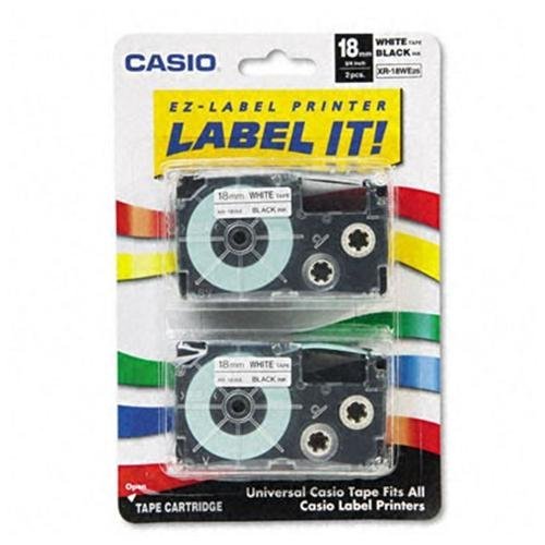 Casio Tape Cassettes for KL Label Makers, 18mm x 26ft, Black on White, 2/Pack XR-18WE2S