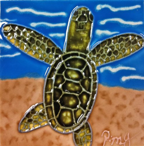 Continental Art Center SD-114 4 by 4-Inch Sea Turtle No.4 Ceramic Art Tile