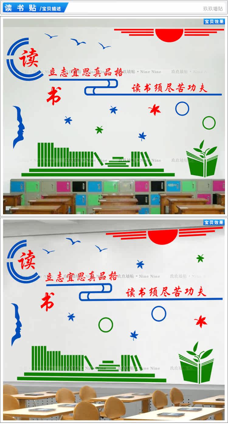 读书学校校园布置走廊图书馆教室文化墙装饰学生励志阅览室墙贴纸