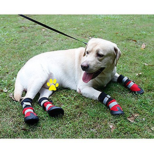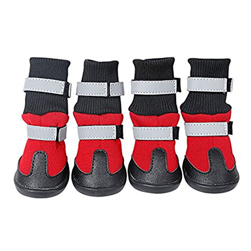 -. Title : Dog Boots Antiskid Pet Shoes for Waterproof Snow Boots Dog Paws Protector for Medium to Large Dogs, Adjustable Reflecting Strap,4 Sizes