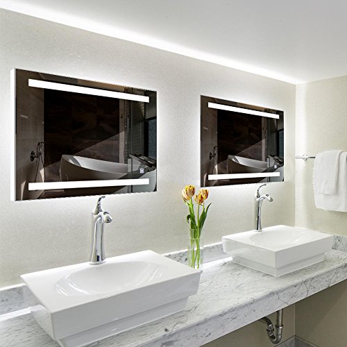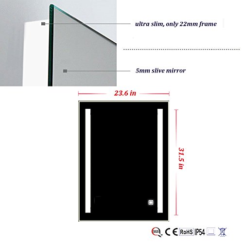 Alice Dimmable and Anti-fog LED Backlit Mirror Wall Mount Mirror Illuminated Vanity Mirror with Touch Button for Bathroom (32" x 24" - with polished edges)