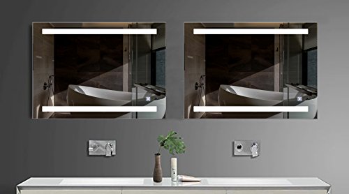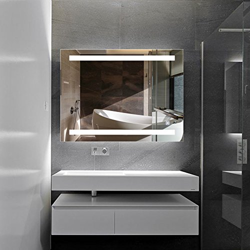 The TOUCH BUTTON that you can use to turn on/off the lights,which would be more higher-end than the traditional switch. This led mirror is also equipped with standard UL plug which can be hard wired. The LED LIGHT SOURCE is approved for IP54 and RoHS compliant for bathroom use. Simple and stylish style with no visible screws or switches. Ready to hang vertically or horizontally, installation manual and mounting hardware included.