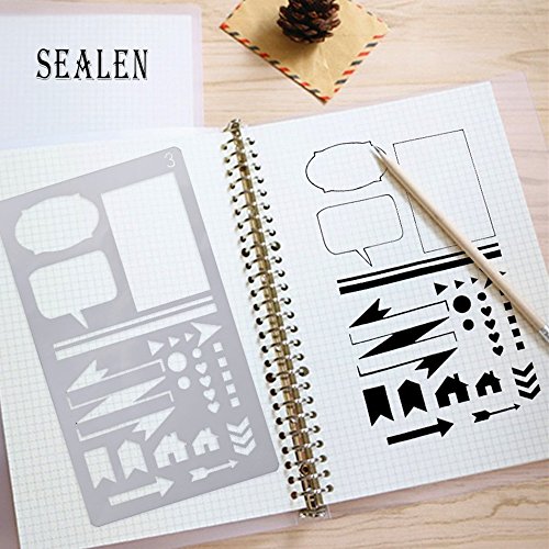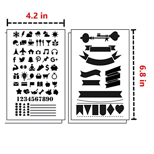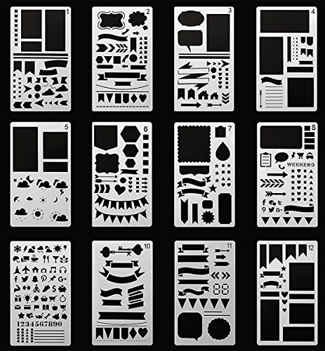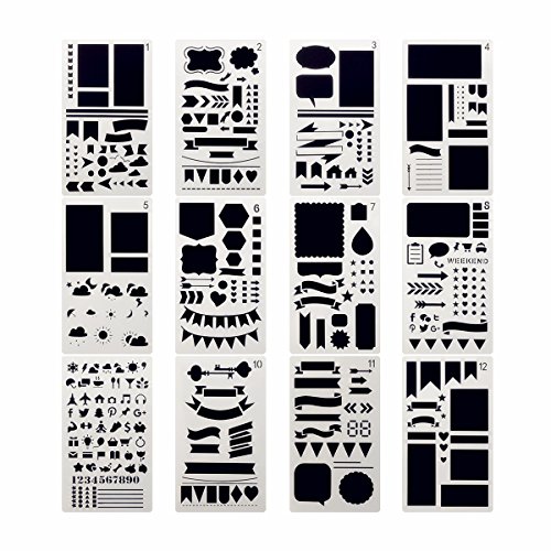 Journal Stencil Plastic Planner Stencils 12 Pieces Premium Journal Notebook Diary Scrapbook DIY Drawing Template Stencil 4.2 x 7 Inch (Set of 12)