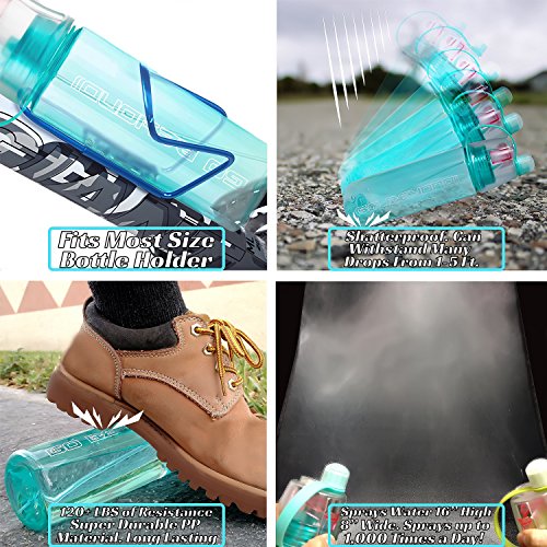 FUNCTIONALITY: Sprays drinks up to 16" high and 10" wide. Holds 20 Oz, 600 ML weighs only 6oz
